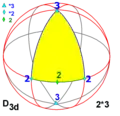 Los grupos de simetría esférica finita también se denominan grupos de puntos en tres dimensiones. Hay cinco clases de simetría que tienen dominios fundamentales triangulares: diédrico, cíclico, tetraédrico, octaédrico e icosaédrico.