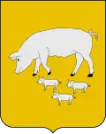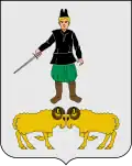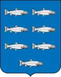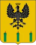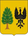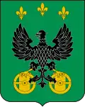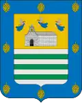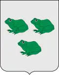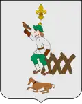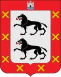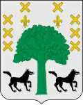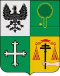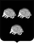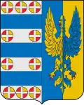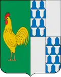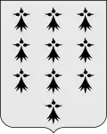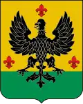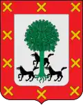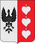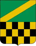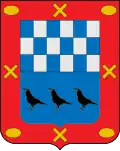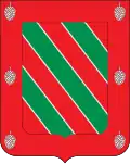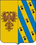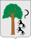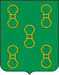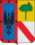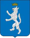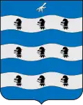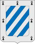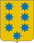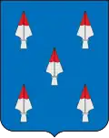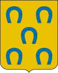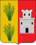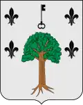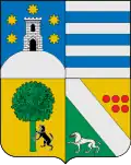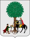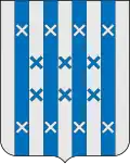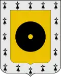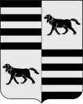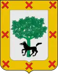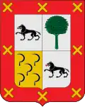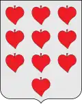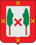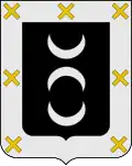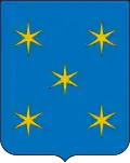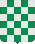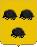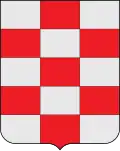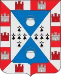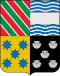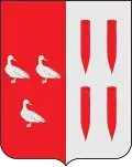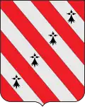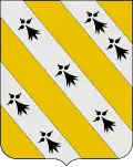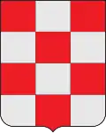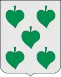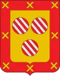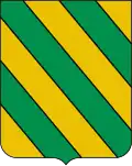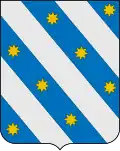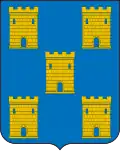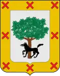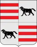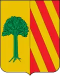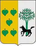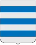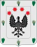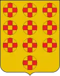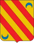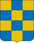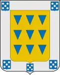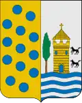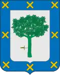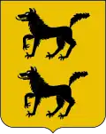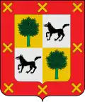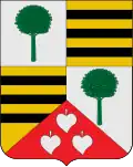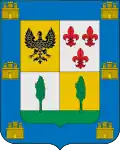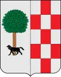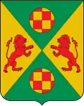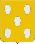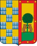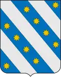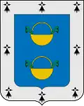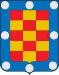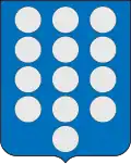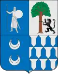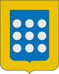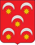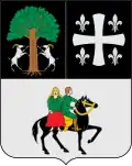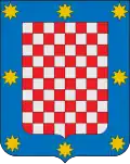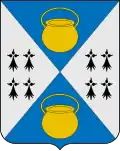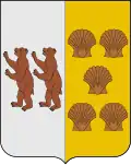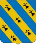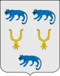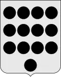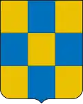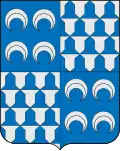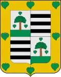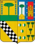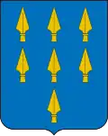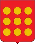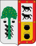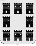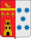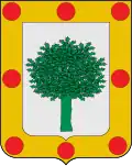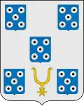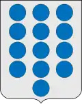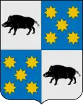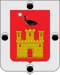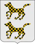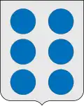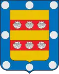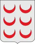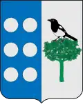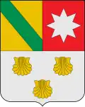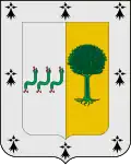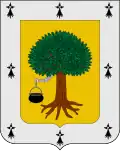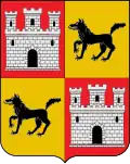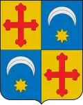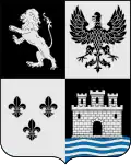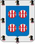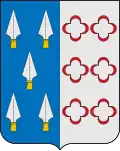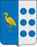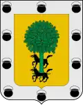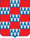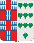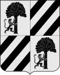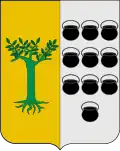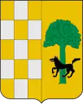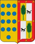 Escudo partido: 1º. De azur con una garza andante, de oro. 2º De plata con seis roeles de azur, de dos palos. Otros dicen: De plata con un roble de sinople y dos lobos de sable, linguados de gules, pasan al pie del tronco, uno ante él y el otro detrás. |