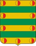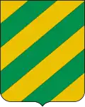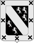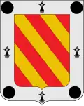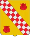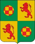 - ↑ Otros cambian el orden de los cuarteles y la banda por barra, como si el escudo estuviese voleado.