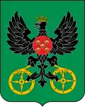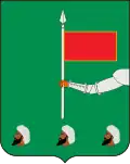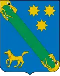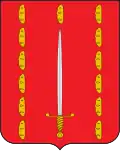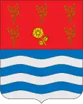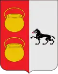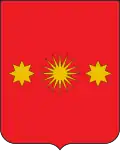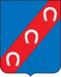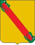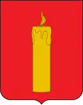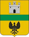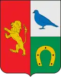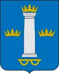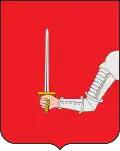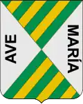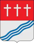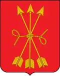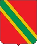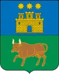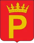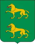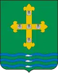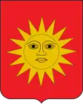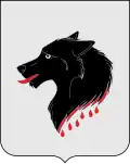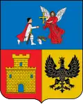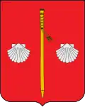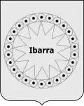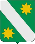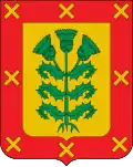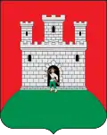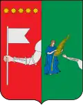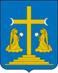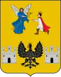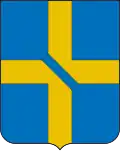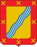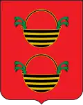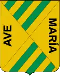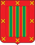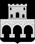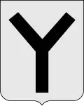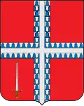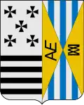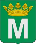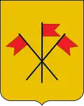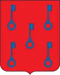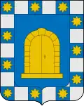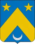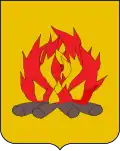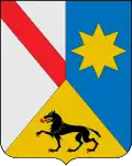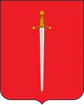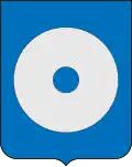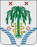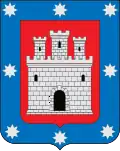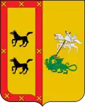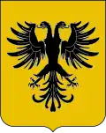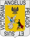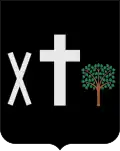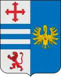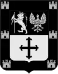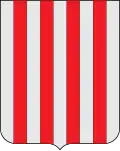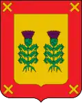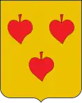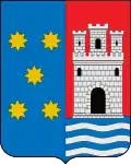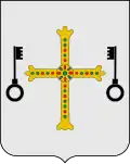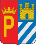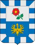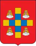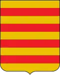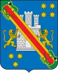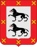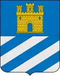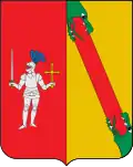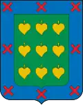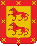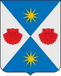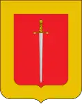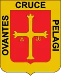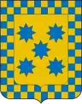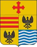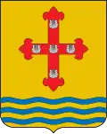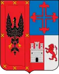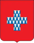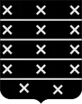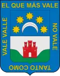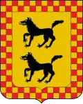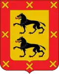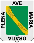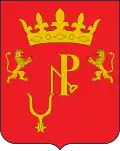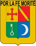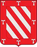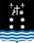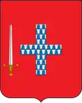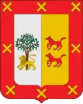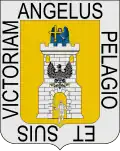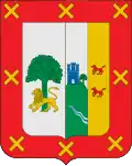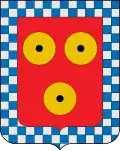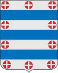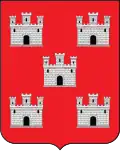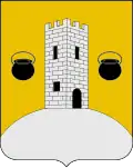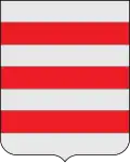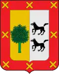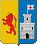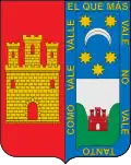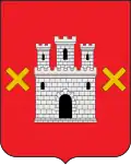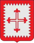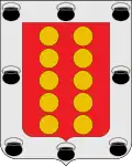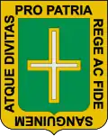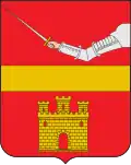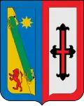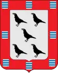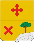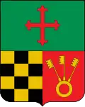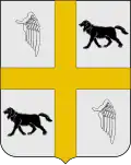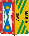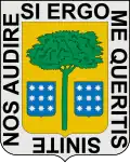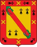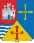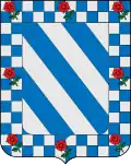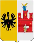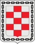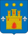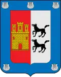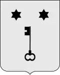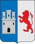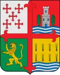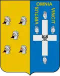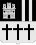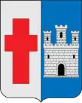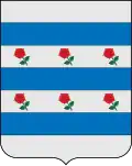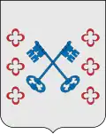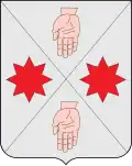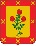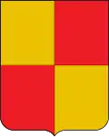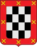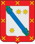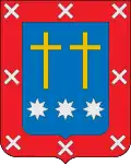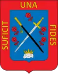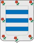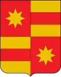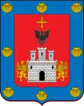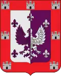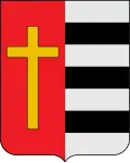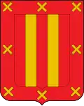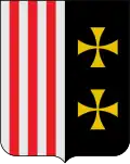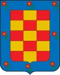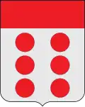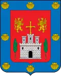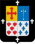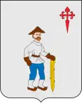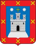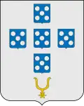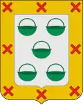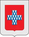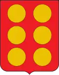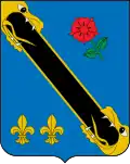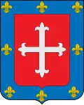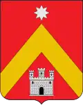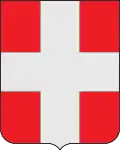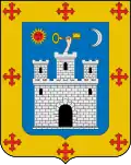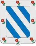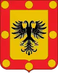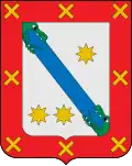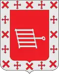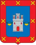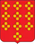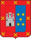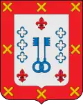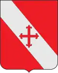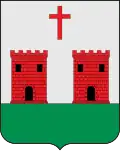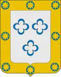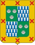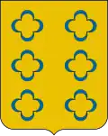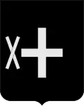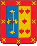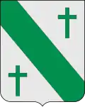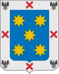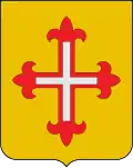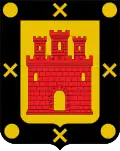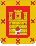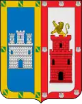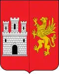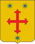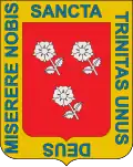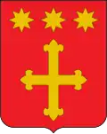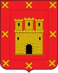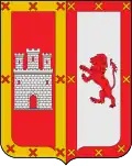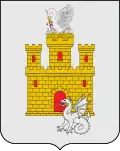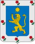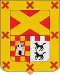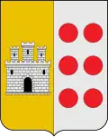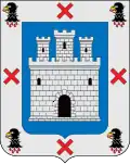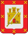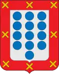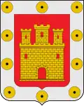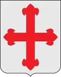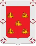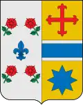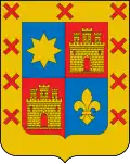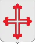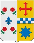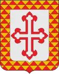 - ↑ Hay otra versión del escudo que cambia la rosa situada en jefe, por una cruz llana.
