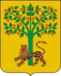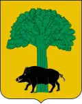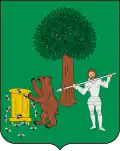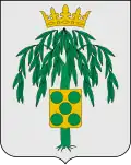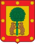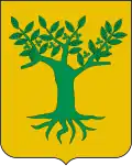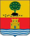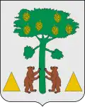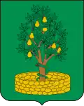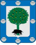 De sinople con un árbol de su color natural en el flanco izquierdo. En el diestro, una colmena de oro, con abejas del mismo metal, volando en su trono. Sobre la colmena, un podadera de oro. |