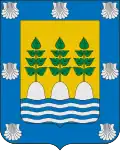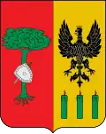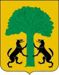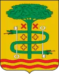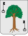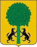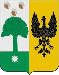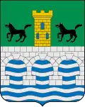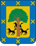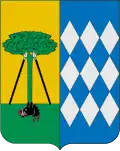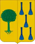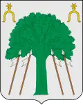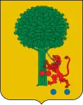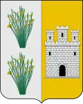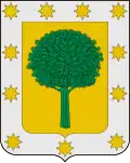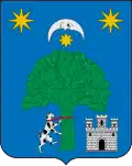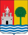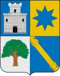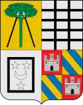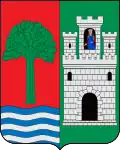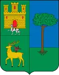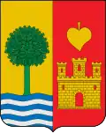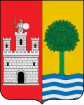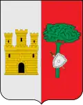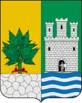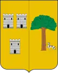 Escudo partido: 1º. De oro, con un roble de sinople sobre ondas de azur y plata. 2º. De gules, con un castillo de oro surmontado de una panela del mismo metal. |
