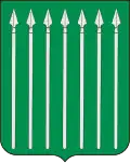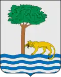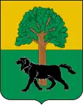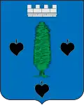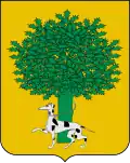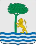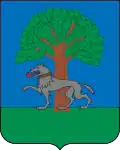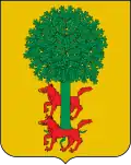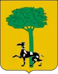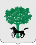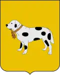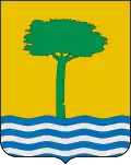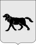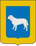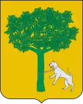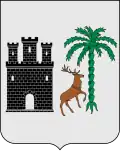De plata con un árbol de sinople sobre ondas de azur y plata. Atado al tronco con cadena de sable, un lebrel blanco. |