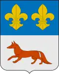 Escudo cortado: 1º. De azur, con dos lises de oro. 2º. De plata con un zorro andante, de su color natural. |