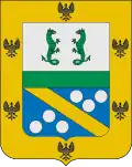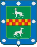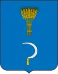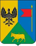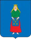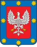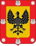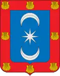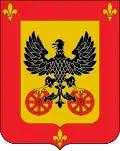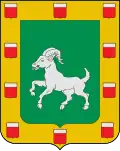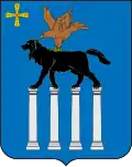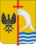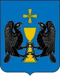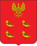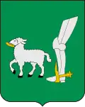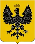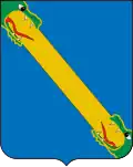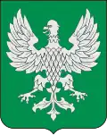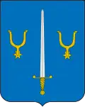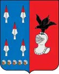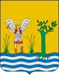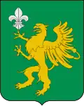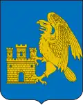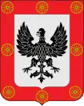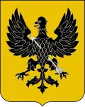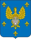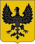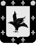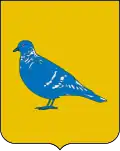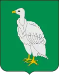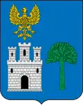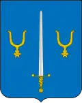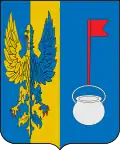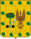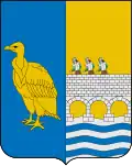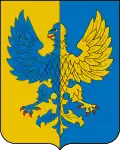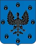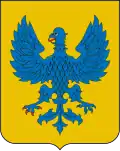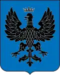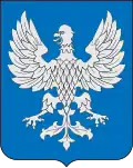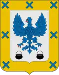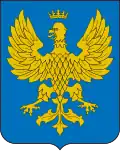 De azur con un águila volante de su color, coronada y armada de oro. | ||