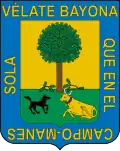 En campo de sinople una colmena de oro, con abejas volando en derredor, es asaltada por un oso de su color natural. A su izquierda un hombre armado, de plata, intenta herir al oso con un alanza. Y un castaño, de su natural color. [‘‘n’‘ 3] |