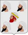 - ↑ Otros tienen la variante de que en el cuarto cuartel, en vez de llevar los tres alfanjes en una faja, lleva solamente do en esa posición y el tercero horizontal, entrecruzado en esos dos.