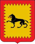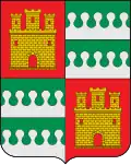 Escudo cuartelado: 1º y 4º. De gules con un castillo de plata. 2º y 3º. De oro con un lobo pasante de sable. |