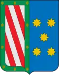- ↑ También hay otras versiones del escudo que suprimen la bordura.