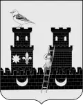Sobre un puente de tres arcos, un castillo, y en él una puerta de arco grande y dos más pequeñas a los costados de la anterior. (Se desconocen los esmaltes) |