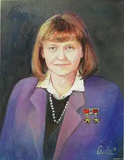 - ↑ Las cosmonautas Svetlana Savítskaya y Valentina Tereshkova son las únicas Héroes de la Unión Soviética que aún siguen vivas