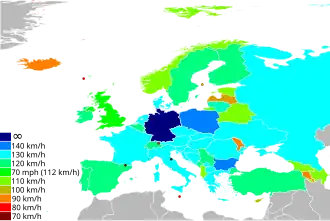 Las siguientes tablas muestran los distintos límites de velocidad genéricos según la jurisdicción que se aplica a diferentes tipos de vehículos que viajan en tres diferentes tipos de vialidades en distintos países europeos. Los límites de velocidad reales pueden variar más allá de estos valores. Las velocidades están listadas en kilómetros por hora.