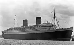 - ↑ Although Queen Elizabeth was completed on 2 de marzo de 1940 as an ocean liner, she was converted into a troop ship due to the outbreak of World War II. She became the largest ship in the world in 1942 when SS Normandie burned and sank at her moorings. Transatlantic service was not resumed until after the war ended, and Queen Elizabeth officially entered into passenger service on 16 de octubre de 1946.