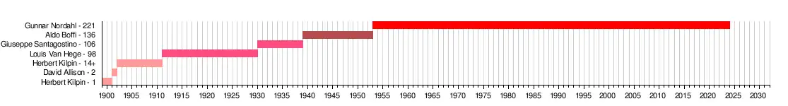 - ↑ Logrados en dos etapas en el club: 1909-12 y 1915-19