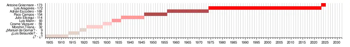 - ↑ En dos etapas en el club: entre 2014-19 y 2021-Act.