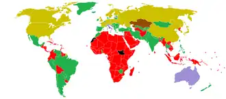 Oro representa a los países que ganaron al menos una medalla de oro. Plata representa a los países que ganaron al menos una medalla de plata. Bronce representa a los países que ganaron al menos una medalla de bronce. Verde representa a los países que no ganaron ninguna medalla. Rojo representa a los países que no participaron en los Juegos Olímpicos de Invierno de 2014.
