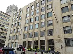 ![]() Vista del edificio del Ministerio de la Salud y la Protección Social, lado izquierdo de la imagen, desde la estación Profamilia de Transmilenio |