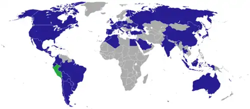 - ↑ «LISTA DEL CUERPO DIPLOMÁTICO, ORGANISMOS INTERNACIONALES Y CUERPO CONSULAR». MINISTERIO DE RELACIONES EXTERIORES. 21 de octubre de 2021.