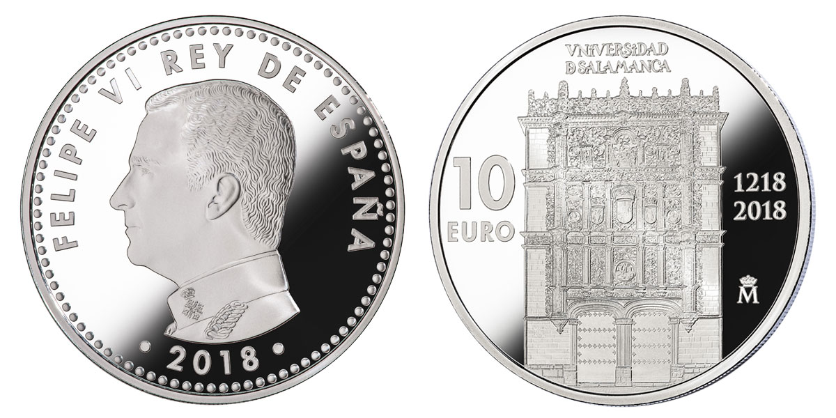 144. «Orden EIC/496/2018, de 9 de mayo, por la que se acuerda la emisión, acuñación y puesta en circulación de monedas de colección «800 Años de la Universidad de Salamanca».». BOE. 9 de mayo de 2018. Consultado el 6 de agosto de 2018.