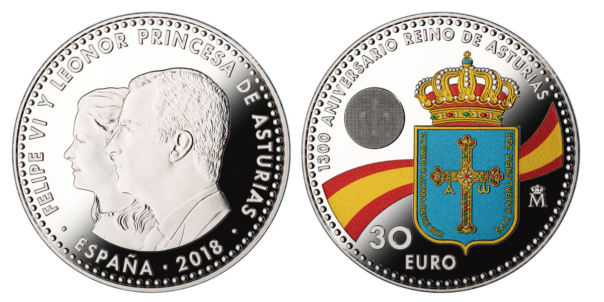 155. «Orden ECE/736/2018, de 4 de julio, por la que se acuerda la emisión, acuñación y puesta en circulación de monedas de colección de 30 euro que conmemoran el 1300.º Aniversario del Reino de Asturias.». BOE. 4 de julio de 2018. Consultado el 25 de febrero de 2019.