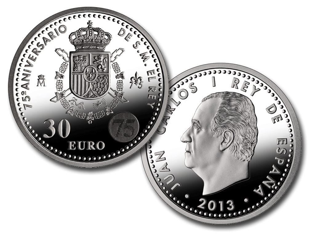 146. a b c d e f «Orden EIC/495/2018, de 9 de mayo, por la que se acuerda la emisión, acuñación y puesta en circulación de monedas de colección «50º Aniversario de Su Majestad el Rey».». BOE. 9 de mayo de 2018. Consultado el 25 de febrero de 2019.