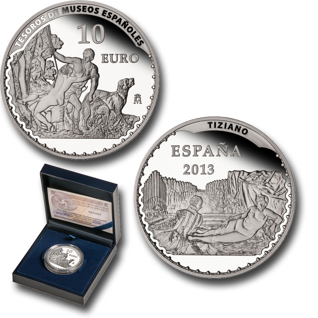 87. a b c d e «Orden ECC/1159/2013, de 12 de junio, por la que se acuerda la emisión, acuñación y puesta en circulación de monedas de colección de la I serie de «Tesoros de Museos Españoles».». BOE. 12 de junio de 2013. Consultado el 14 de junio de 2018.