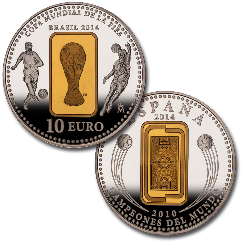 70. «Orden EHA/3583/2011, de 21 de diciembre, por la que se acuerda la emisión, acuñación y puesta en circulación de monedas de colección «Copa Mundial de la FIFA Brasil 2014».». BOE. 21 de diciembre de 2011. Consultado el 12 de junio de 2018.