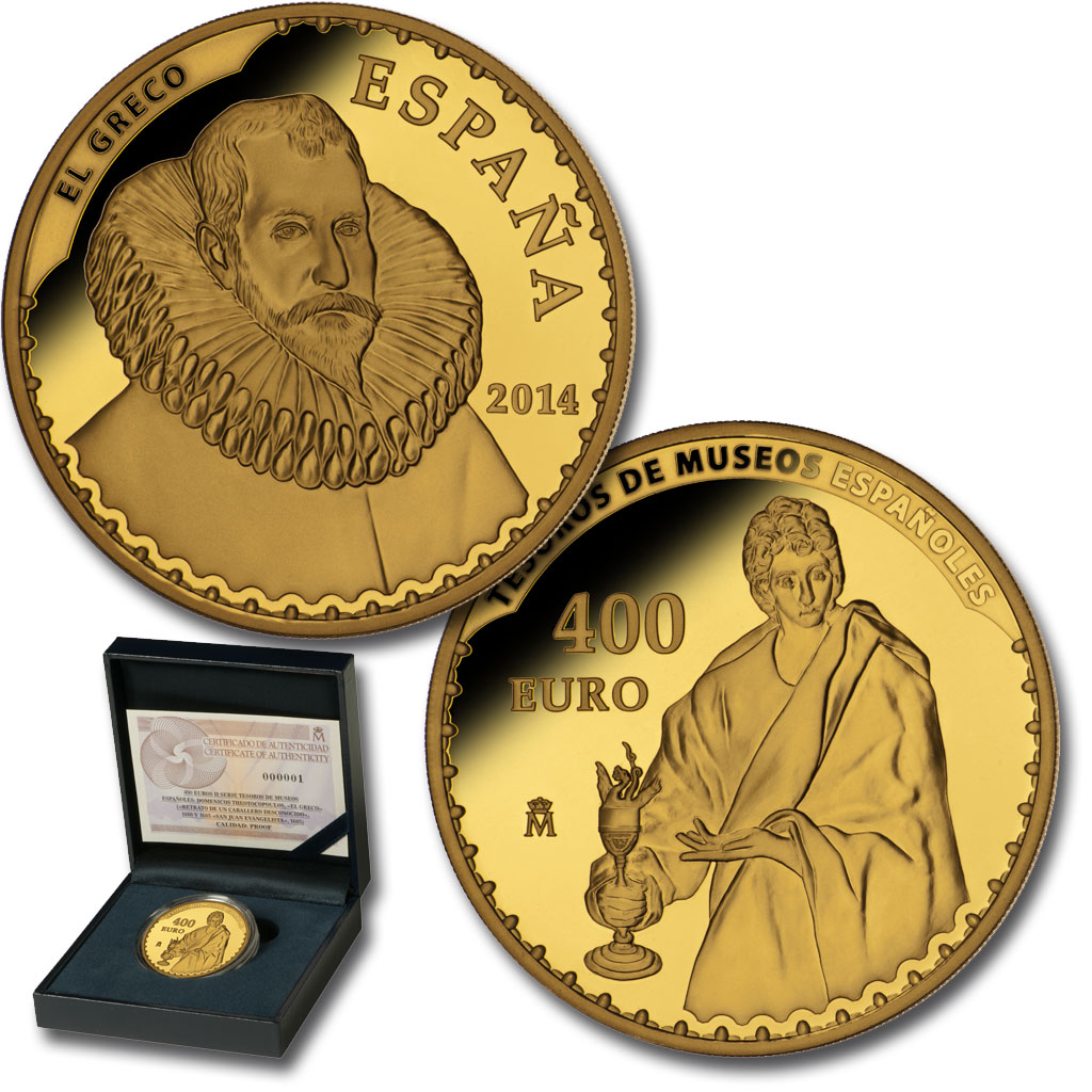 110. «Orden ECC/2531/2013, de 27 de diciembre, por la que se acuerda la emisión, acuñación y puesta en circulación de monedas de colección de 30 euro «IV Centenario de El Greco».». BOE. 27 de diciembre de 2013. Consultado el 14 de junio de 2018.