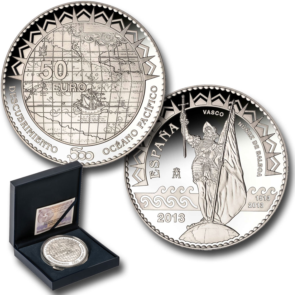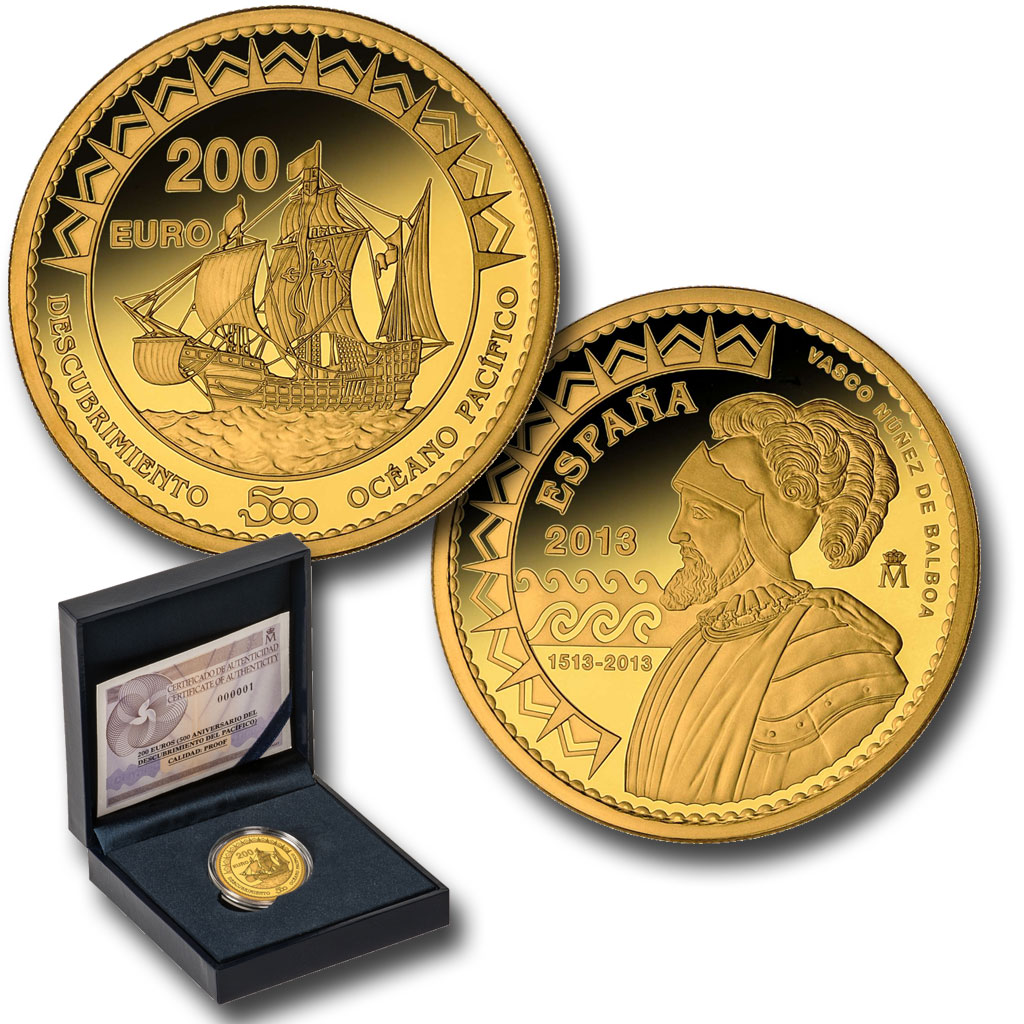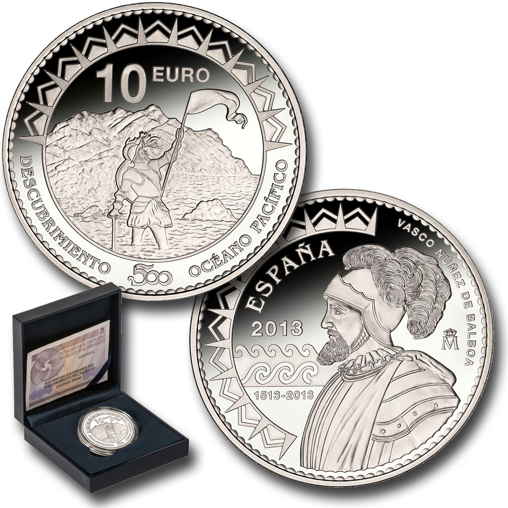 88. a b c «Orden ECC/1576/2013, de 2 de agosto, por la que se acuerda la emisión, acuñación y puesta en circulación de monedas de colección «500 Aniversario del descubrimiento del Pacífico».». BOE. 2 de agosto de 2013. Consultado el 14 de junio de 2018.