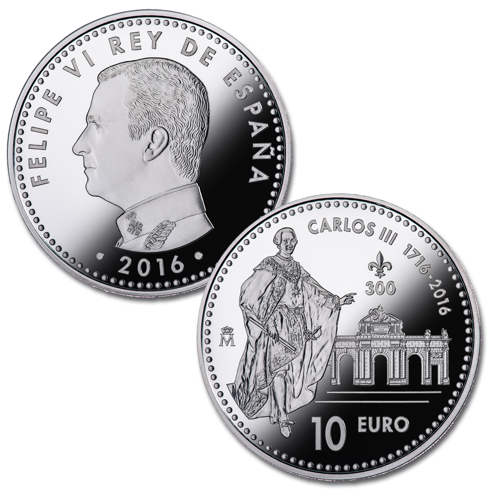 135. «Orden ECC/1272/2016, de 21 de julio, por la que se acuerda la emisión, acuñación y puesta en circulación de monedas de colección del «Tercer Centenario del Nacimiento de Carlos III».». BOE. 21 de julio de 2016. Consultado el 1 de julio de 2018.