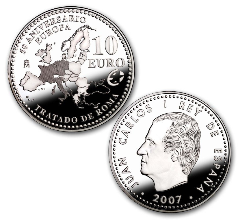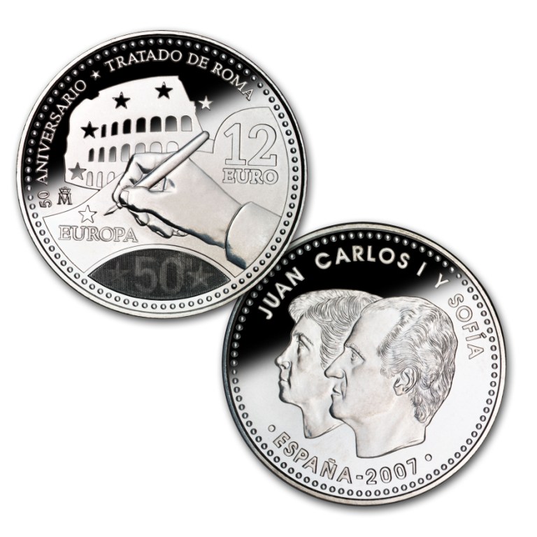 102. «ORDEN EHA/232/2007, de 1 de febrero, por la que se acuerda la emisión, acuñación y puesta en circulación de monedas de colección de 12 euro que conmemoran el 50.º Aniversario del Tratado de Roma.». 1 de febrero de 2007. Consultado el 30 de abril de 2018.