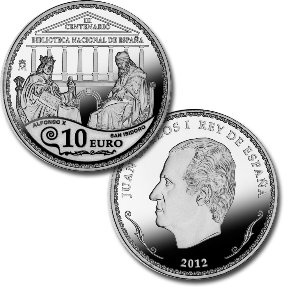 74. «Orden ECC/776/2012, de 3 de abril, por la que se acuerda la emisión, acuñación y puesta en circulación de monedas de colección «III Centenario de la Biblioteca Nacional de España».». BOE. 3 de abril de 2012. Consultado el 13 de junio de 2018.