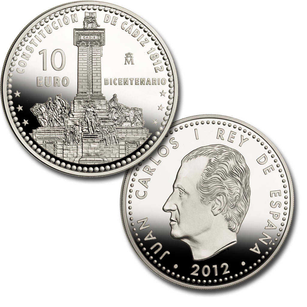 73. «Orden ECC/775/2012, de 3 de abril, por la que se acuerda la emisión, acuñación y puesta en circulación de monedas de colección «Bicentenario de la Constitución de 1812».». BOE. 3 de abril de 2012. Consultado el 13 de junio de 2018.