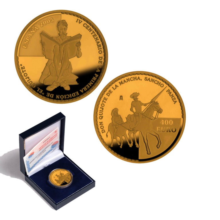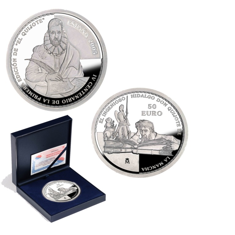 127. a b «Orden ECC/961/2015, de 18 de mayo, por la que se acuerda la emisión, acuñación y puesta en circulación de una serie de monedas de colección que conmemoran el IV Centenario de la publicación de la «Segunda parte del Ingenioso Caballero Don Quijote de la Mancha».». BOE. 18 de mayo de 2015. Consultado el 15 de junio de 2018.