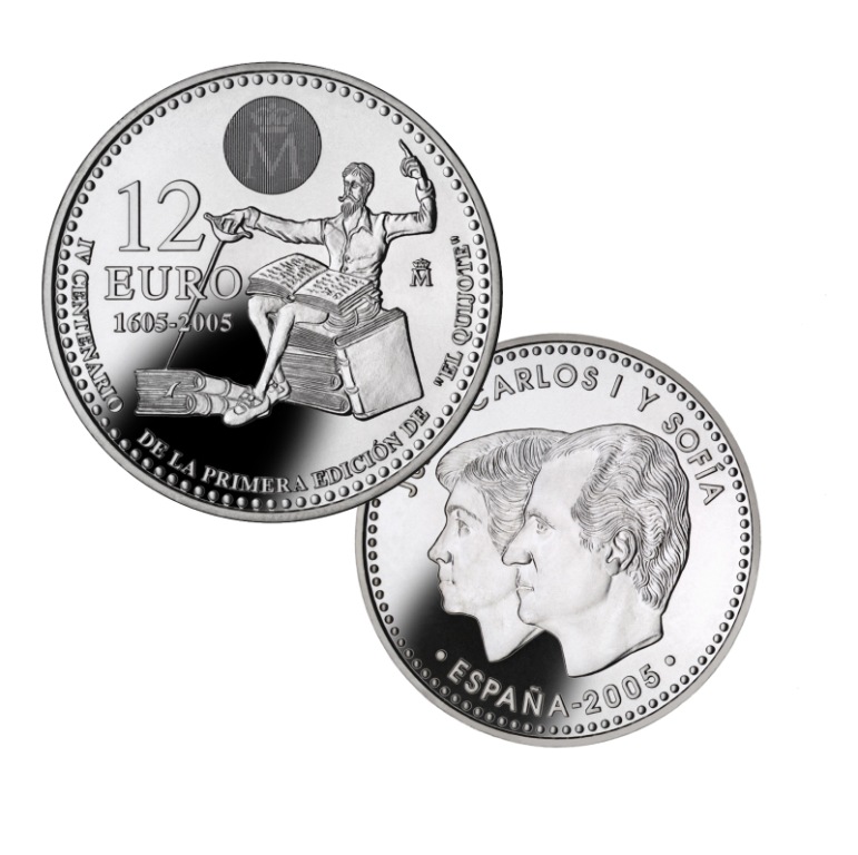 100. «ORDEN EHA/554/2005, de 8 de marzo, por la que se acuerda la emisión, acuñación y puesta en circulación de monedas de colección de 12 euro que conmemoran el IV centenario de la primera edición de «El Quijote».». 8 de marzo de 2005. Consultado el 26 de abril de 2018.