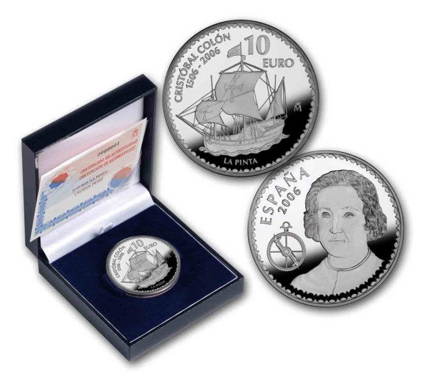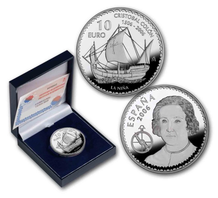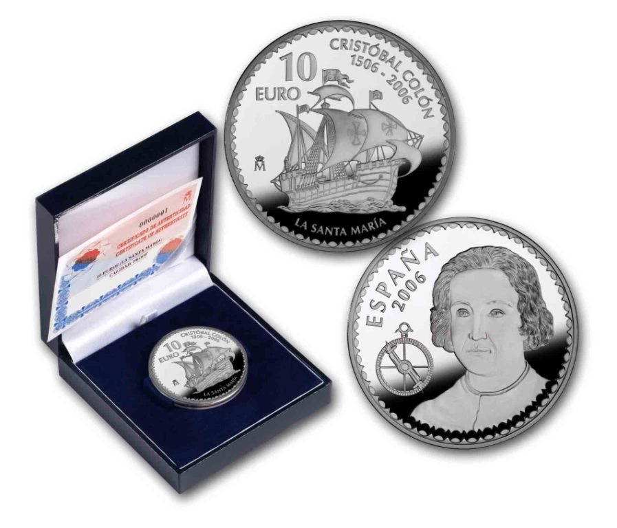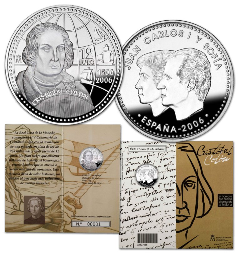 101. «ORDEN EHA/429/2006, de 2 de febrero, por la que se acuerda la emisión, acuñación y puesta en circulación de monedas de colección de 12 euro que conmemoran el V Centenario de la muerte de Cristóbal Colón.». 2 de febrero de 2006. Consultado el 26 de abril de 2018.