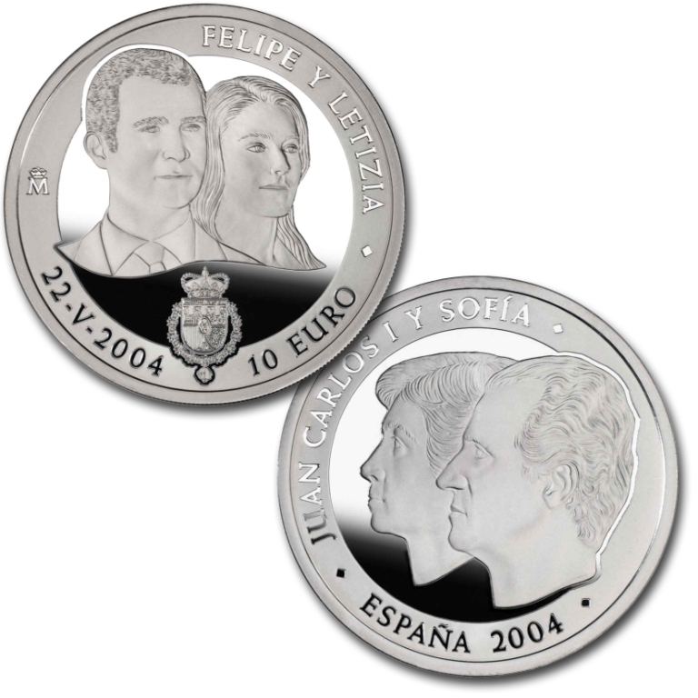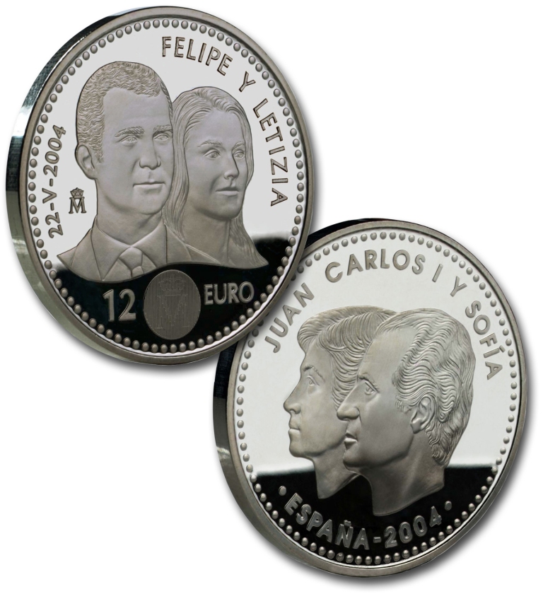 99. «ORDEN ECO/637/2004, de 4 de marzo, por la que se acuerda la emisión, acuñación y puesta en circulación de monedas de colección de 12 euro que conmemoran el enlace matrimonial del Príncipe de Asturias.». 4 de marzo de 2004. Consultado el 25 de abril de 2018.