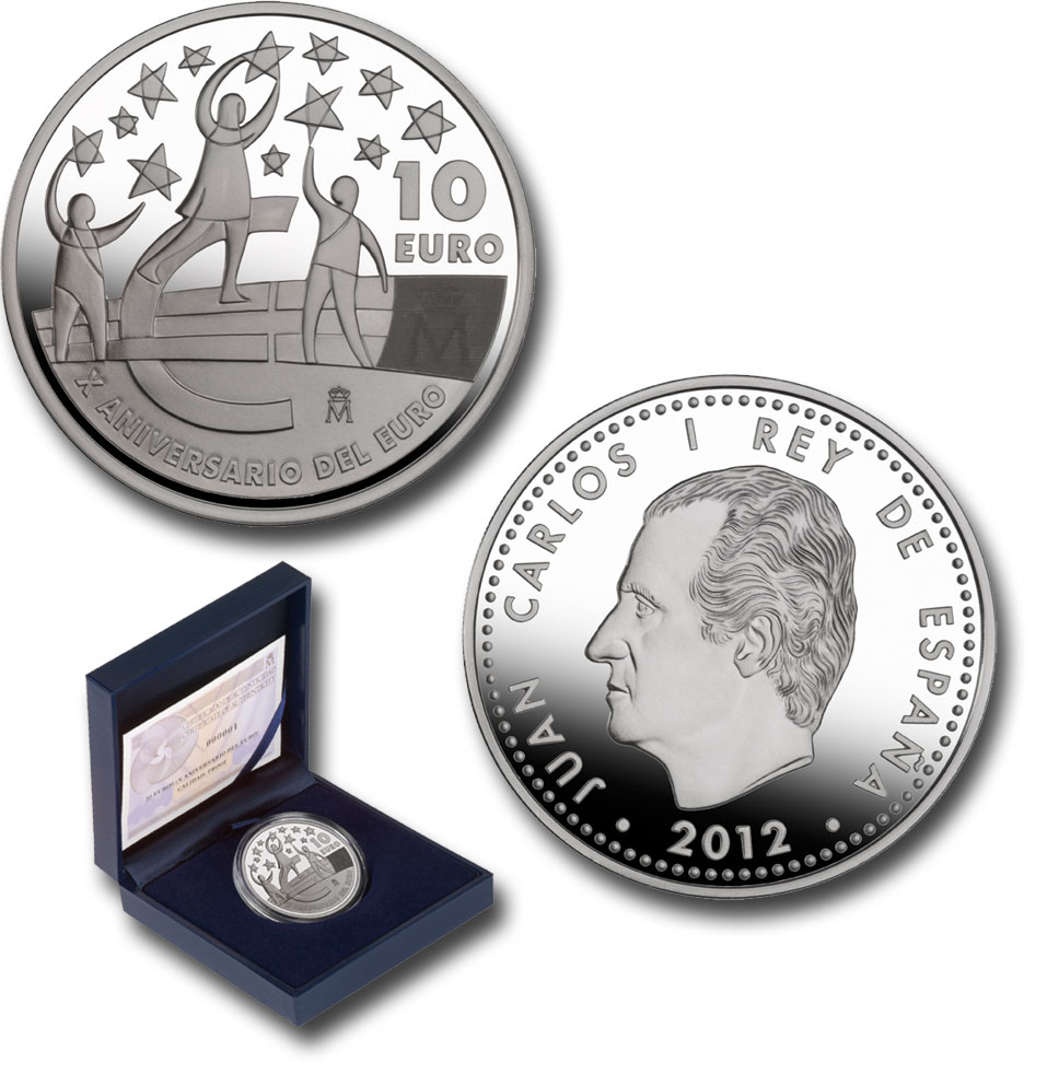 71. a b c «Orden EHA/3584/2011, de 21 de diciembre, por la que se acuerda la emisión, acuñación y puesta en circulación de monedas de colección «X Aniversario del Euro».». BOE. 21 de diciembre de 2011. Consultado el 12 de junio de 2018.
