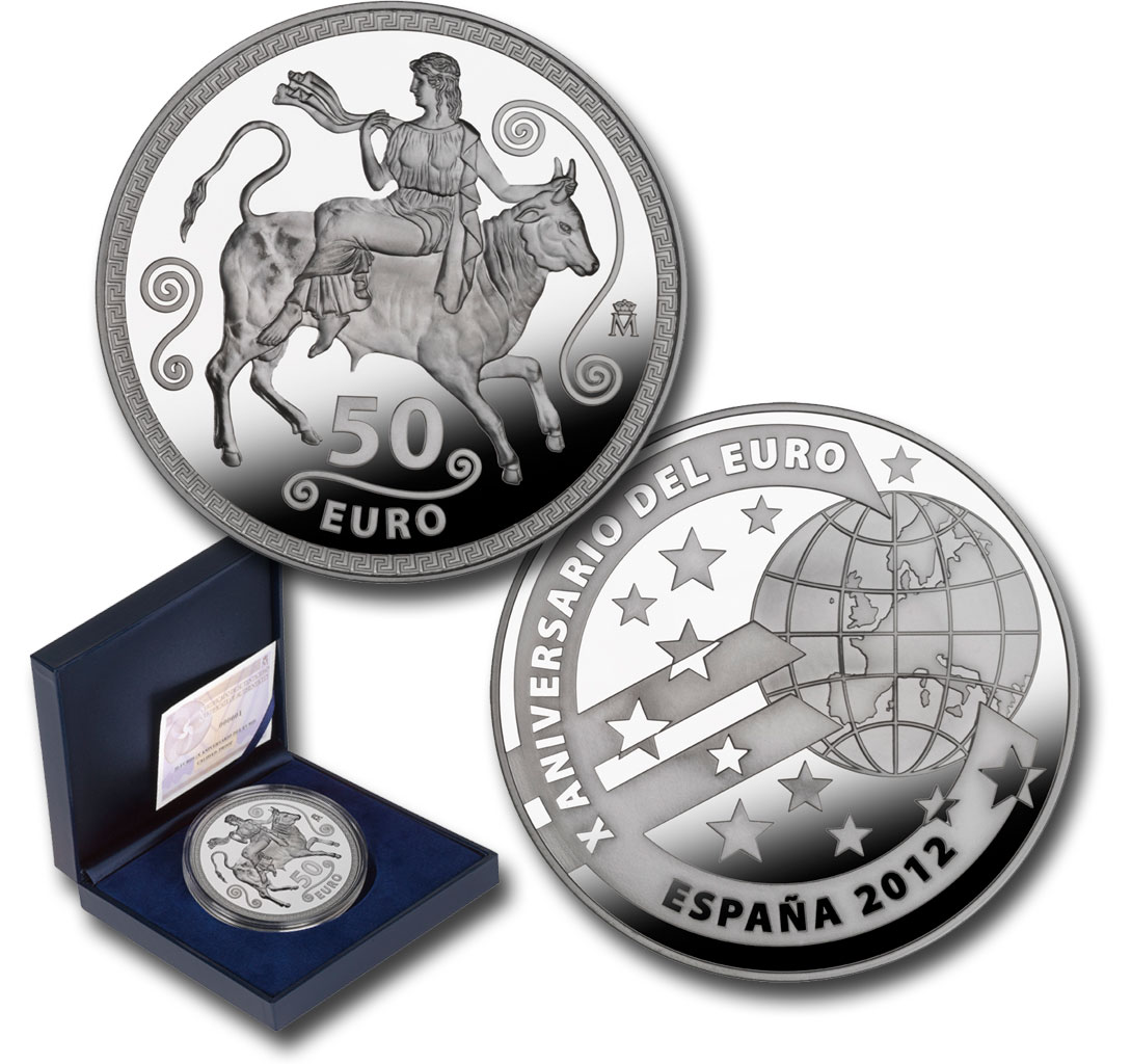La aparición física del euro el 1 de enero de 2002 no resultó incompatible con la acuñación de monedas en euros cuya finalidad principal no sea la de medio de pago, sino la difusión cultural y artística o la conmemoración de acontecimientos de cierta transcendencia, tal y como se había realizado hasta ese momento con monedas emitidas en pesetas.