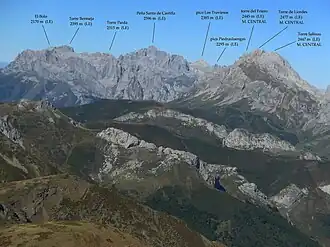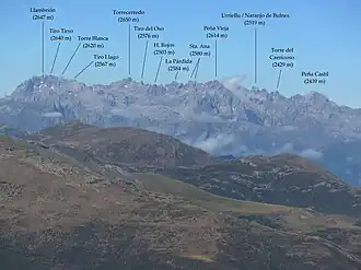 Son 40 las cumbres que superan los 2500 m, todas ellas, menos una, pertenecientes al macizo de los Urrieles.