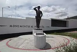 El monumento dedicado a Felipe Ángeles, se localizaba originalmente en lo que es la Plaza Bicentenario, pero en el año 2010 fue retirada de su ubicación original, y se movió a 300 metros de distancia sobre la misma avenida sobre un camellón central.[56] Fue reinaugurado el 23 de septiembre de 2010. Características Este monumento comprende una estatua que se encuentra sobre un pedestal circular, en la parte posterior se encuentra una pared semicircular que lleva las letras doradas que dicen: "Ingeniero Militar Felipe Ángeles". Ubicación Se encuentra ubicado en la Avenida Felipe Ángeles, frente al Centro comercial Perisur. Coordenadas 20°5′22.9344″N 98°46′15.7434″O / 20.089704000, -98.771039833 | |
