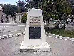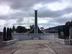 Inaugurado el 26 de noviembre de 1941, obra de Medardo Anaya Armas de estilo art déco.[55] Características Es un mausoleo de estilo clásicao, con de dos elementos, la base rectangular escalonada y la cabecera de tipo obelisco rematando con el relieve escultórico de un águila y en su parte frontal abrazando el volumen escultórico el busto de Felipe Ángeles.[55] Cuenta con un escudo de armas de granada de artillería con flamas, cañones cruzados que representan la fuerza que une a los miembros del Ejército, cestón que simboliza la unión de las fuerzas armadas, flama del pebetero de la antorcha y los rayos que simbolizan las cinco virtudes honor, lealtad, patriotismo, valor y abnegación.[55] Ubicación En el Panteón Municipal de Pachuca. Coordenadas | |