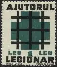 Sello con el símbolo de la Guardia de Hierro rumana sobre una cruz verde relativa a una campaña humanitaria.
