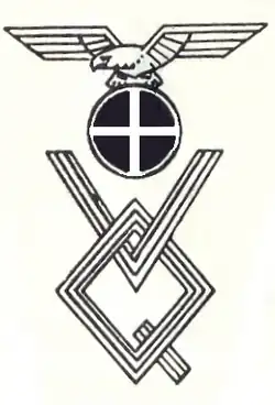 Emblema del Nasjonal Samling, que incluye abajo el monograma del nombre de su líder, Vidkun Quisling.