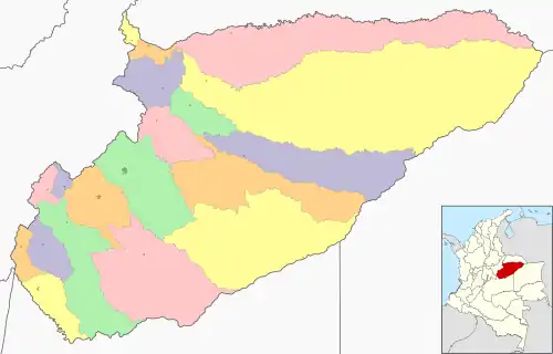 El departamento colombiano del Casanare está dividido en los 19 municipios. Son los siguientes: