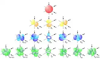 - Orbitales para: z = 115: 1s2, 2s2, 2p6, 3s2, 3p6, 4s2, 3d10, 4p6, 5s2, 4d10, 5p6, 6s2, 4f14, 5d10, 6p6, 7s2, 5f14, 6d10, 7p3.