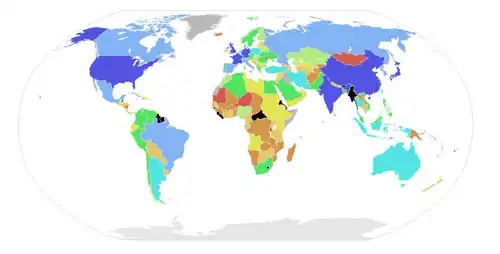 Lista según The World Factbook de la CIA (1993–2017)[5]