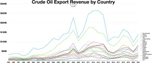 En 2022, Arabia Saudita fue el mayor exportador de petróleo, seguida de Rusia e Irak. Otros grandes exportadores de petróleo de ese año fueron Estados Unidos, Canadá y Emiratos Árabes Unidos. En 2022, Arabia Saudita también tuvo con diferencia el mayor valor de exportación de petróleo en términos de dólares estadounidenses.