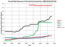 - ↑ a b CIA. «Natural gas - proved reserves». The World Factbook. Consultado el 17 de junio de 2017.