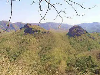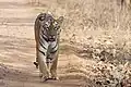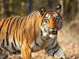 - ↑ En 1982, otras tres sierras, Khitauli, Magdhi, y Kallawah fueron añadidas a la cordillera Tala (el parque Bandhavgarh original) para ampliar la superficie de Bandhavgarh a 44 km². A medida que el Proyecto Tigre fue ampliando sus actividades, y zona de influencia, Bandhavgarh entró en su radio de acción en 1993, y se estableció una zona núcleo de 694 km² incluyendo a lo que anteriormente se llamó "sierras" y el santuario de Panpatha junto con una zona colchón de 437 km², que fue declarada como "reserva del tigre de Bandhavgarh" (con sus 1536 km².